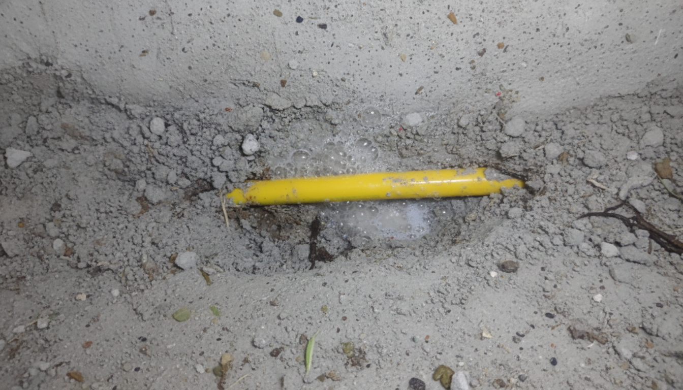 해당 지점에 청음 탐지기를 대고 들어보니, 미세하게 새는 소리가 들렸습니다.