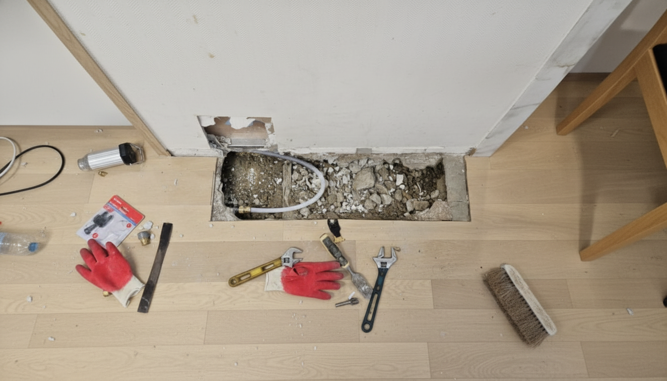 서울 마포 지역의 20년 된 아파트에서 발생한 이번 사례는 위층 거실 바닥 매립 온수관이 시공 불량으로 갈라진 경우였습니다.