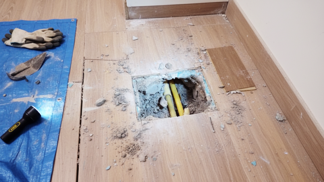 바닥 매립 온수관 미세 손상으로 발생하며, 초기에는 도배지 겉으로 물자국이 안 보이지만 조기 발견 시 피해를 최소화할 수