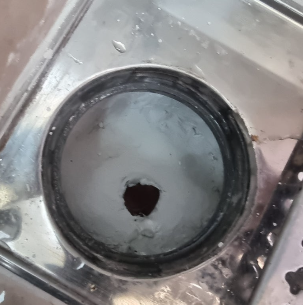 온수관과 냉수관에 각각 5kg 압력을 가했습니다. 온수관에서 압력이 떨어졌습니다. 온수관 손상이 원인이었습니다.