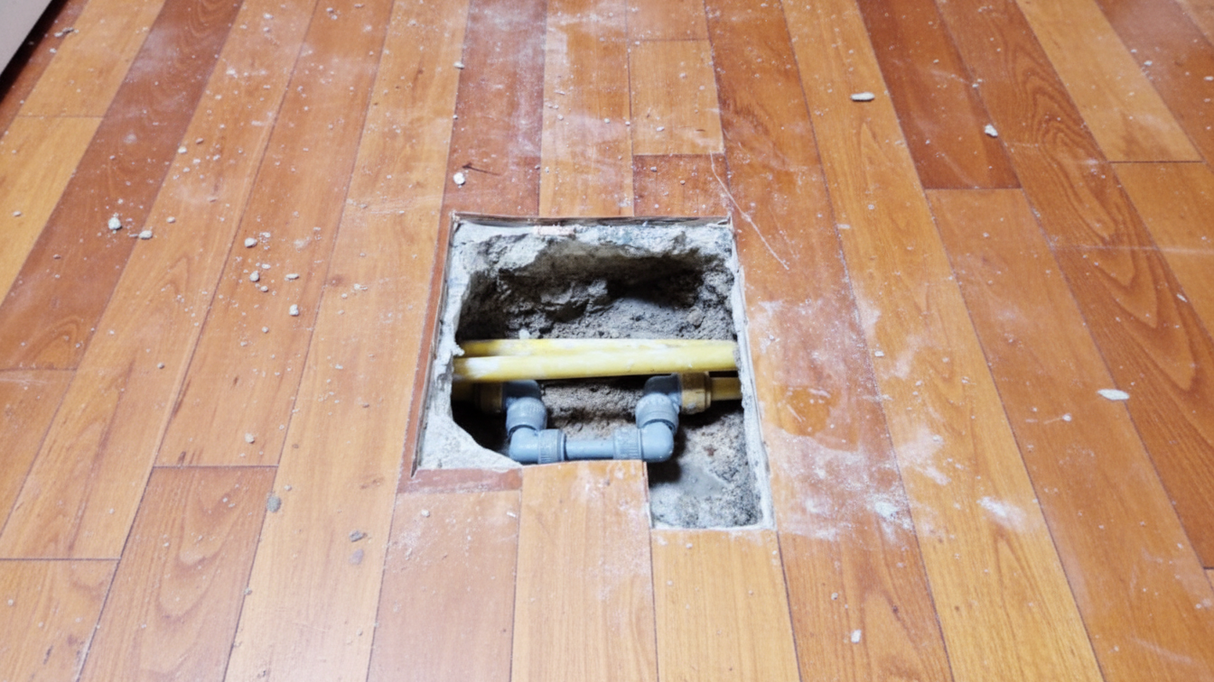 바닥 매립 온수관 미세 손상으로 발생하며, 초기에는 도배지 겉으로 물자국이 안 보이지만 조기 발견 시 피해를 최소화할 수